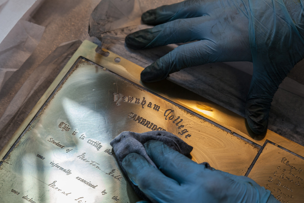 Each historical document was carefully selected, digitised and converted into textured illustrations photo-etched on to brass sheets, each carefully rolled to give them a perception of delicate movement.
