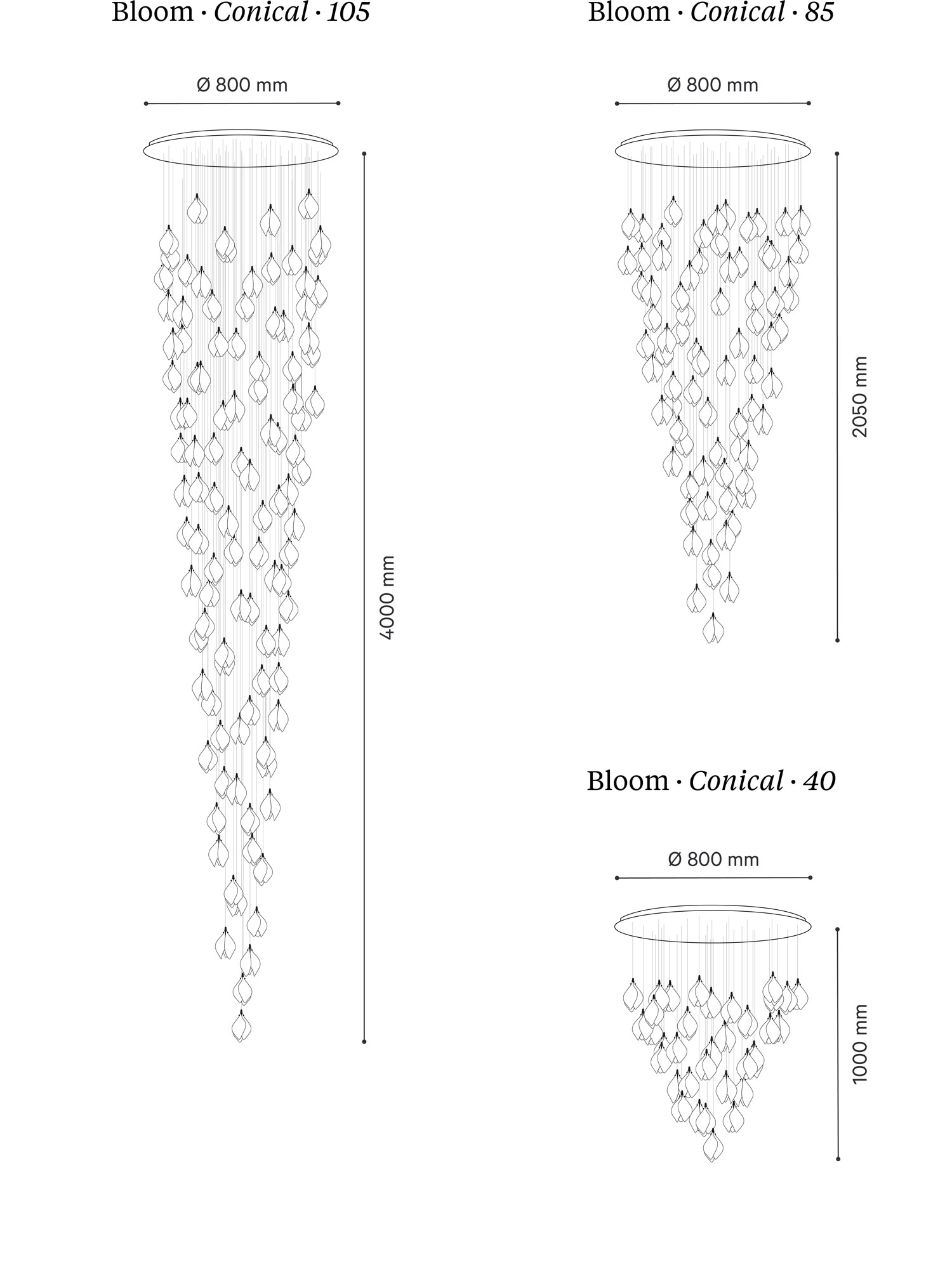 Bloom’s standard compositions are split into three sets characterised by their overall form: Conicals, Blankets and Scandents.