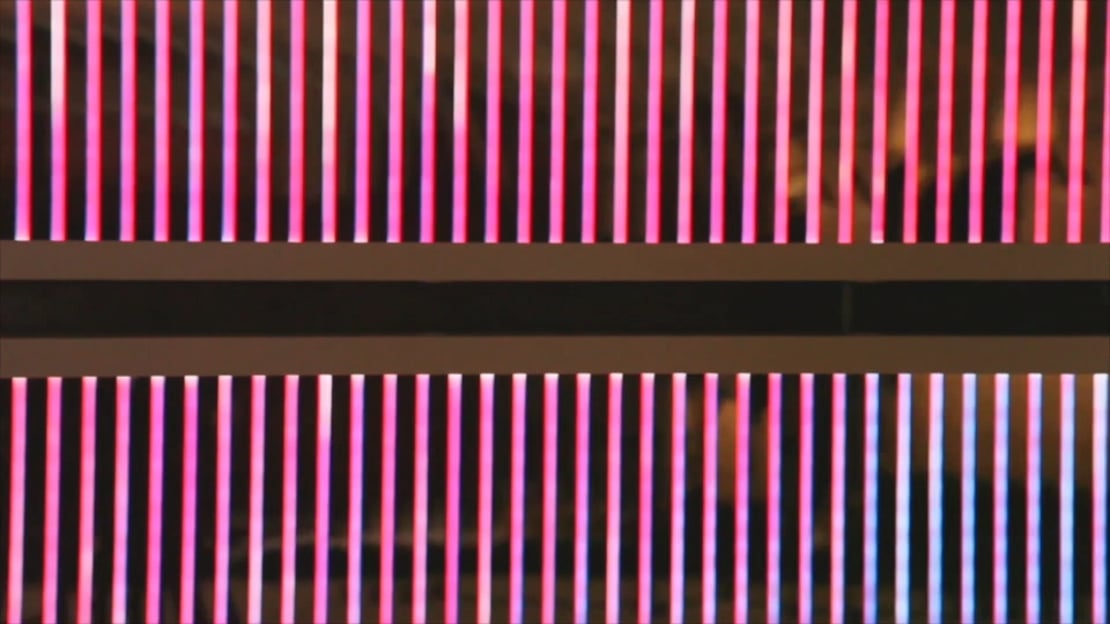 The shallow curvature of each reflective surface allows its opposing colour sources in red and blue to further highlight the perceived distance between the two surfaces as a viewer moves through its central space. The sculpture was created in collaboration with photographer Julian Abrams.