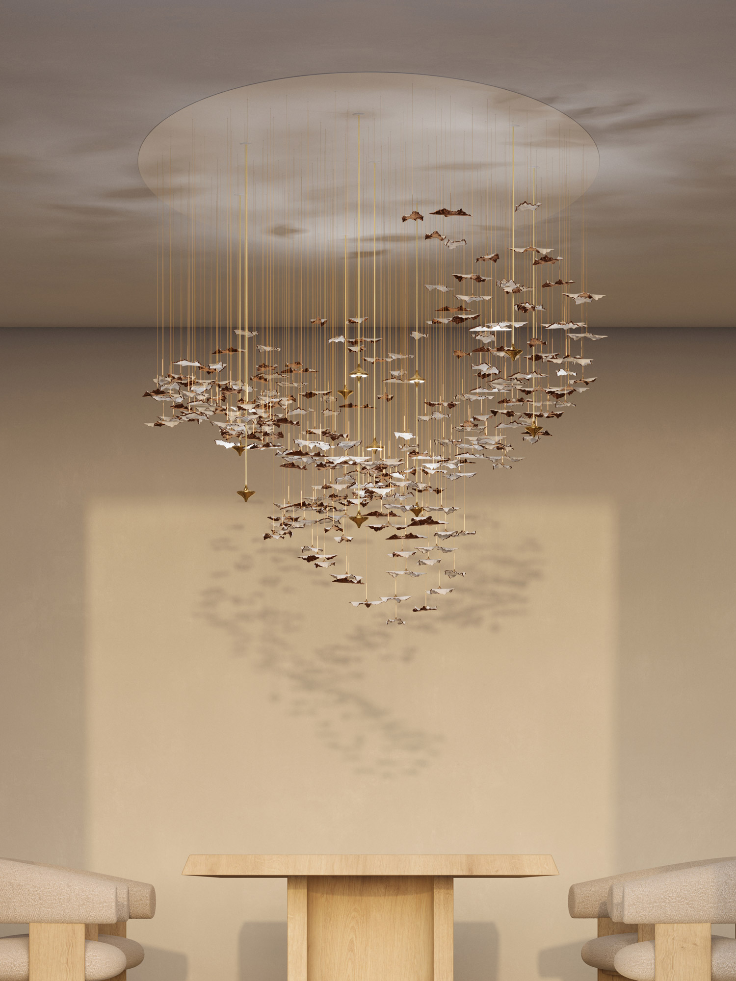 The leaf is transition personified, the epitome of transformation. Light to shade, warmth to nourishment, the herald of changing seasons and the embodiment of nostalgia and hope. Haberdashery were inspired to honour the poetry of these moments through a sculpture of beautiful form and ethereal light.