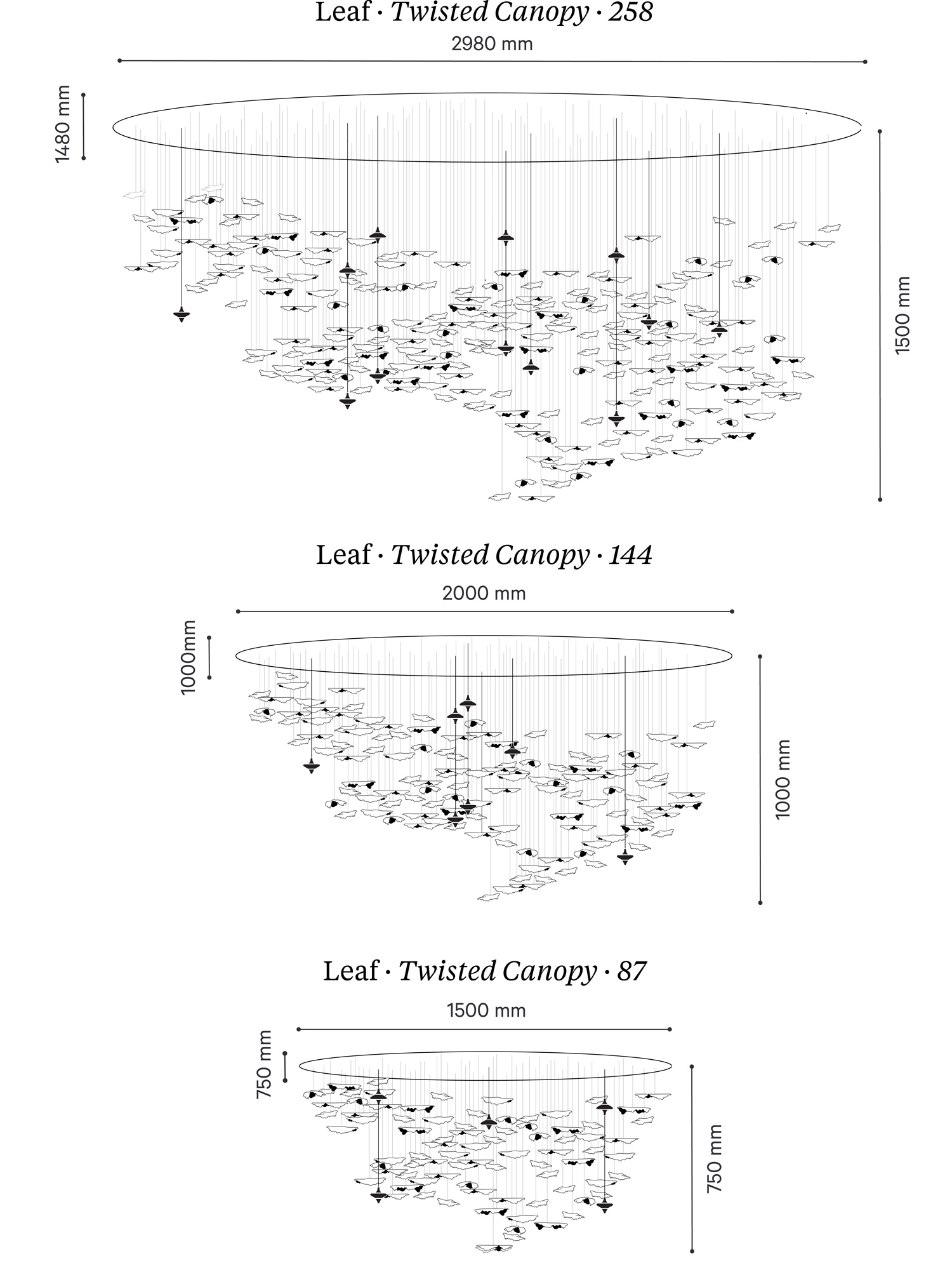 Leaf’s standard compositions are split into three sets characterised by their overall form: Twisted, Natural and Domed Canopies.