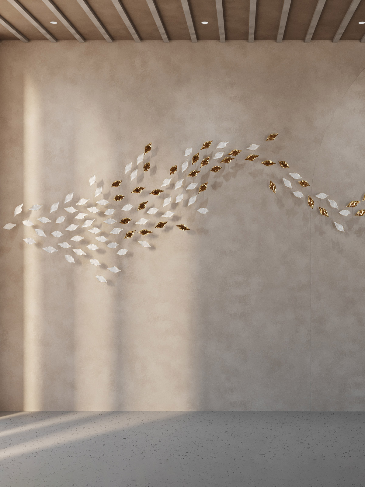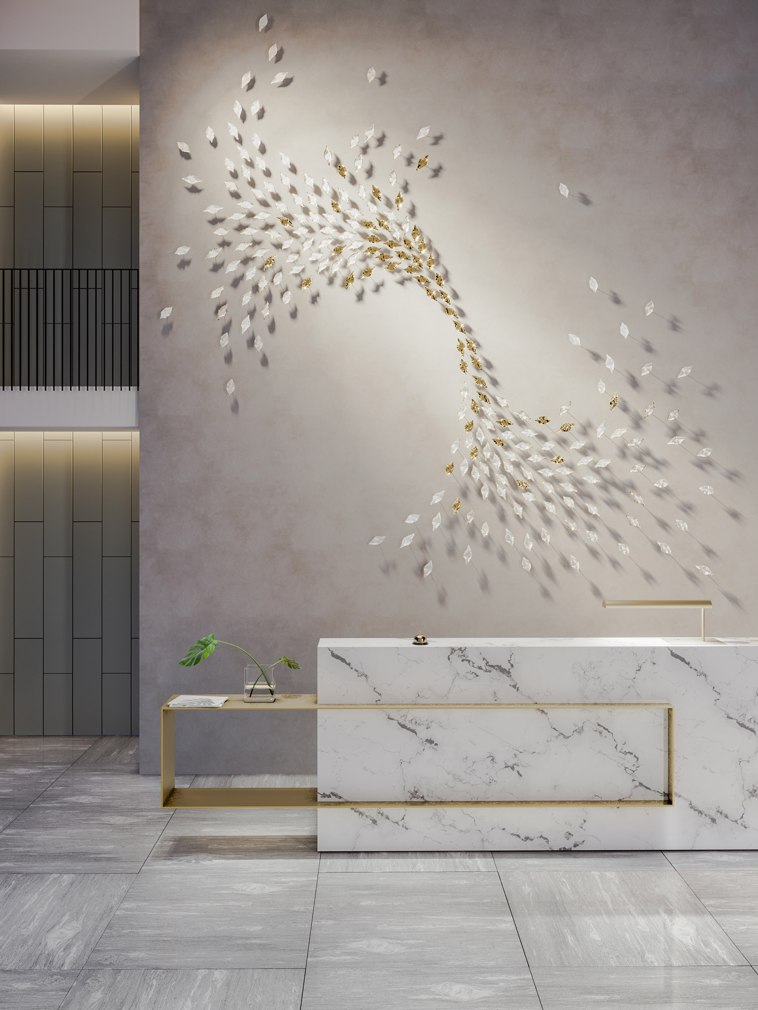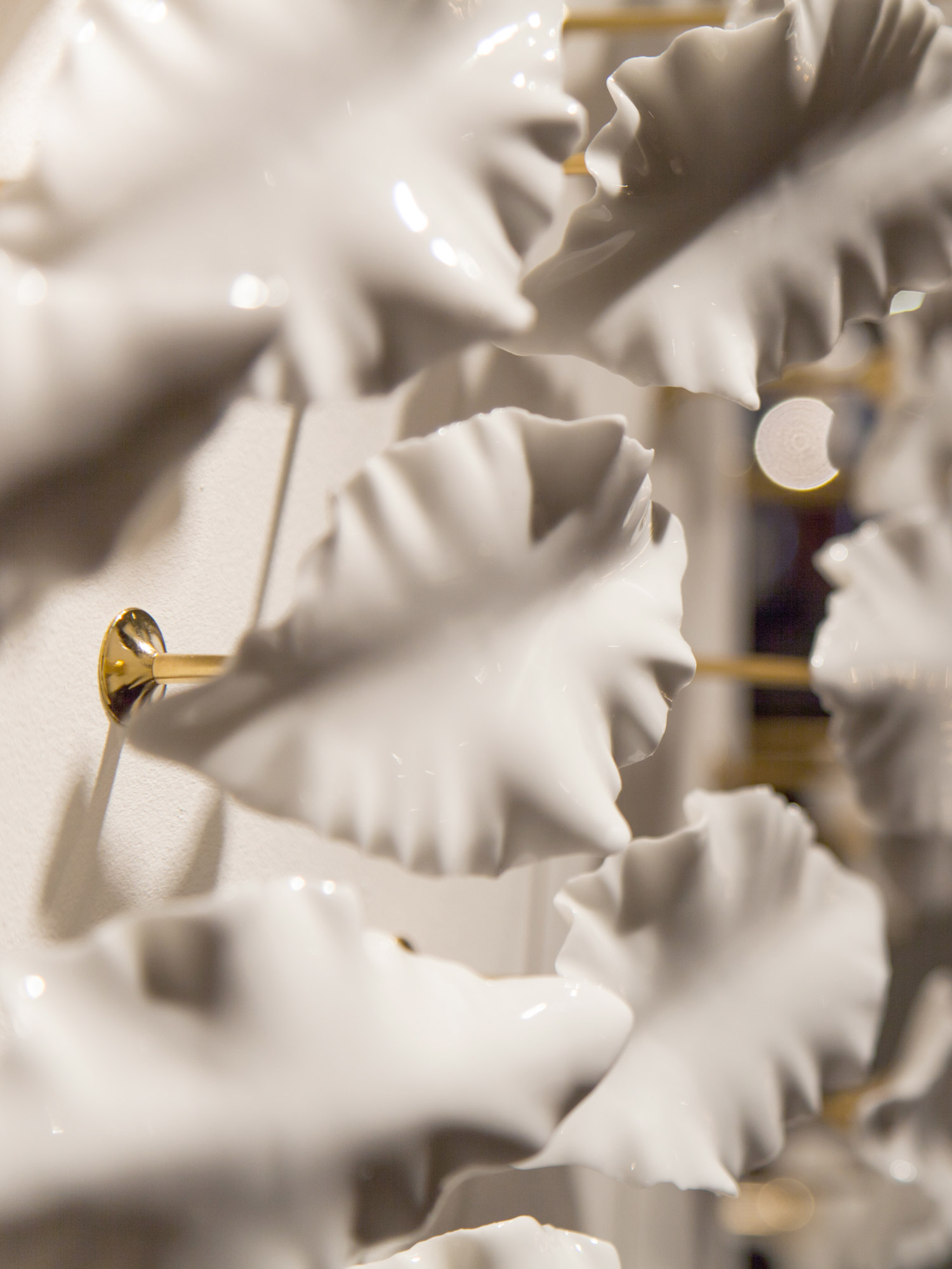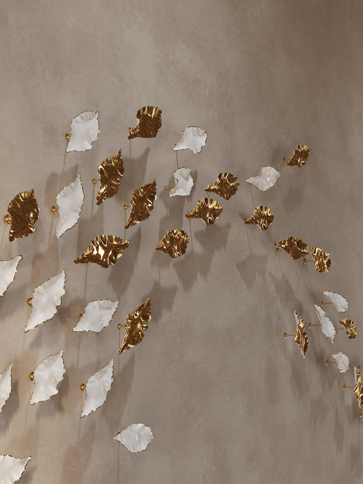 Inspired by the windswept dance of fallen autumnal leaves, Haberdashery offers sculptural wall installations derived from the core concept and materials of the Leafrange.